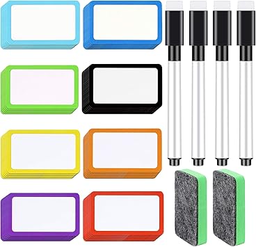 Amazon Com 56 Pieces Magnetic Dry Erase Labels Name Plate Tags And 4 Pieces Magnetic Dry Erase Markers With Eraser Cap And 2 Pieces Magnetic Whiteboard Erasers Dry Erase Erasers For Whiteboards